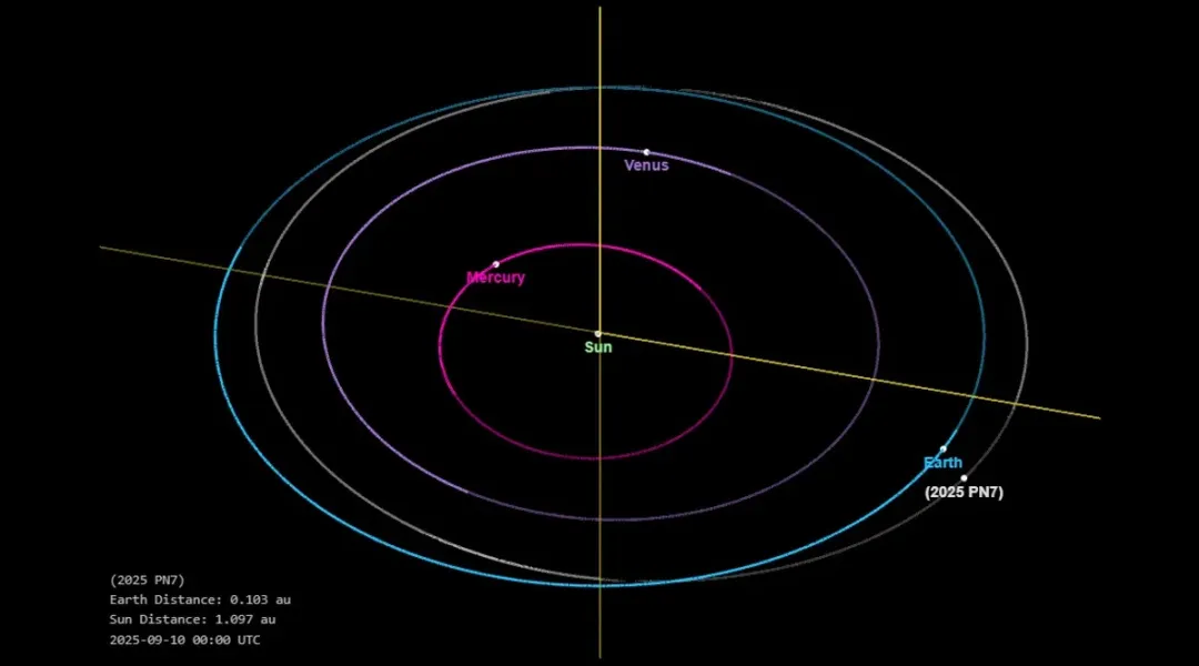 2025 PN7 的轨道始终与地球保持相当接近。(图片来源:NASA/JPL)